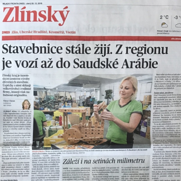 Právě v době, kdy jsme vyráběli stavebnice doslova na plné obrátky nás navštívili ze zlínské redakce MLADÉ FRONTY DNES. Chtěli se mrknout pod pokličku výroby našich DŘEVĚNÝCH STAVEBNIC PONY.